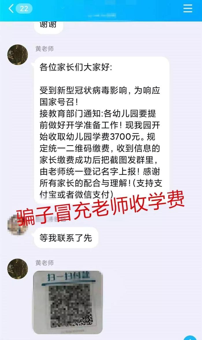 寒假以來,為切實做好教育系統新冠肺炎疫情防控工作,各地教育部門、學校相繼延期開學并因地制宜積極組織開展線上教學。近期,據一些中小學生家長反映,有人通過班級微信群、QQ群等媒介假冒學校教師或班主任身份,以延期開學和組織開展線上教學為由發布詐騙信息,要求學生家長通過微信、支付寶等網上支付方式繳納各項費用,致使部分家長上當受騙。