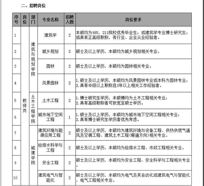 長春建筑學院2022年度招聘計劃