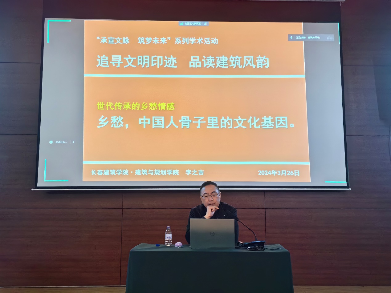 3月26日下午,建筑與規劃學院邀請名譽院長、教育總監、吉林省教學名師李之吉教授在國際學術報告廳主講“追尋文明印跡 品讀建筑風韻”為主題的專題講座。滕佳佳副院長主持了講座,全院師生線上線下同步參加了講座。