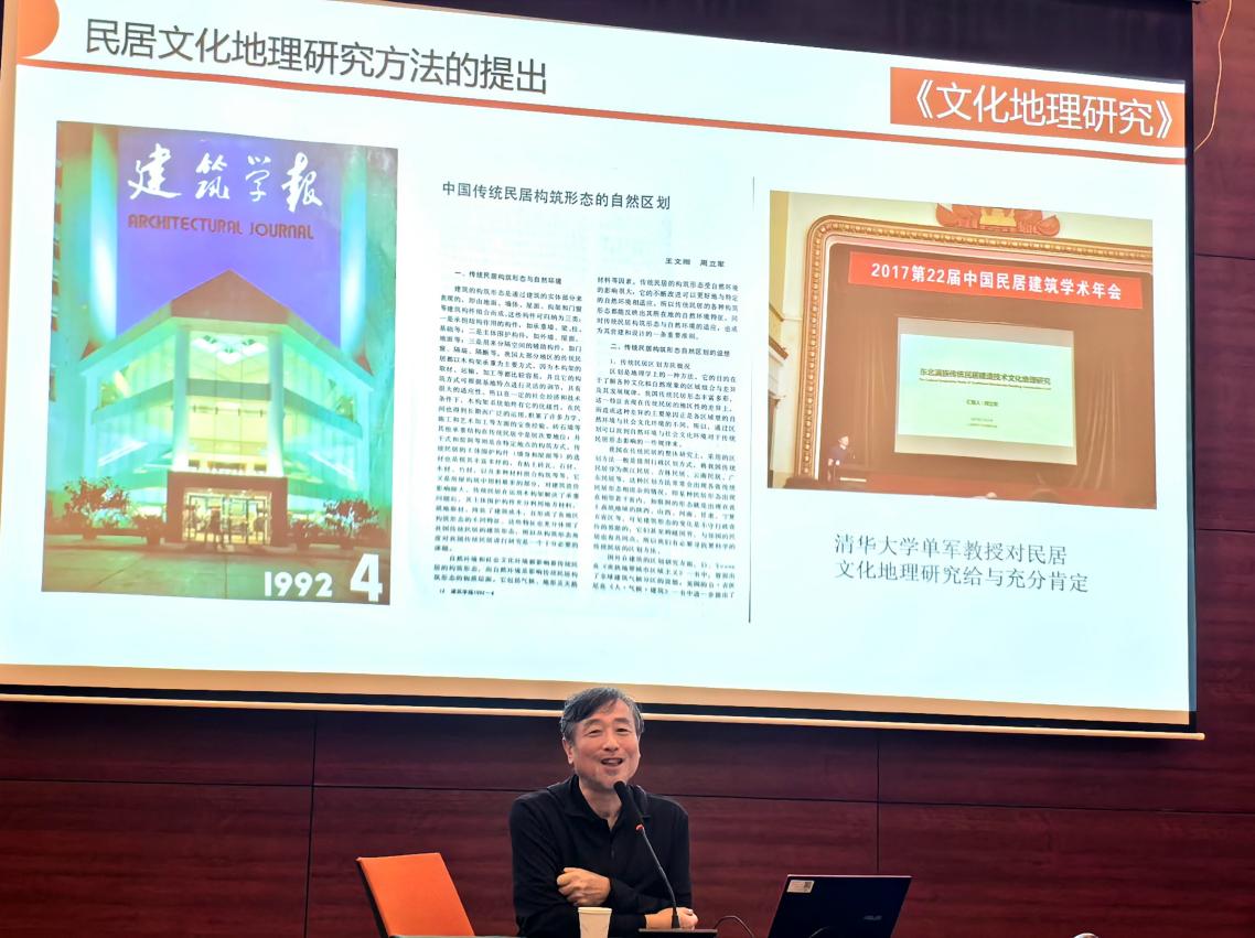在報告中,周立軍教授依托三十年民居教學與科研的成果積累,以《東北民居》《黑龍江聚落》《東北傳統村落及民居類型文化地理研究》及《中國傳統建筑解析與傳承》四部著作為主線,圍繞“形”與“態”兩大維度,系統闡述了東北民居的類型、功能與結構形態,并對傳統聚落保護與更新策略等問題進行了深入探討。周立軍教授還詳細解讀了項目研究上的方法應用、對象選擇、技術路徑等問題,并對實踐成果及項目獲獎等情況也作了細致的介紹。