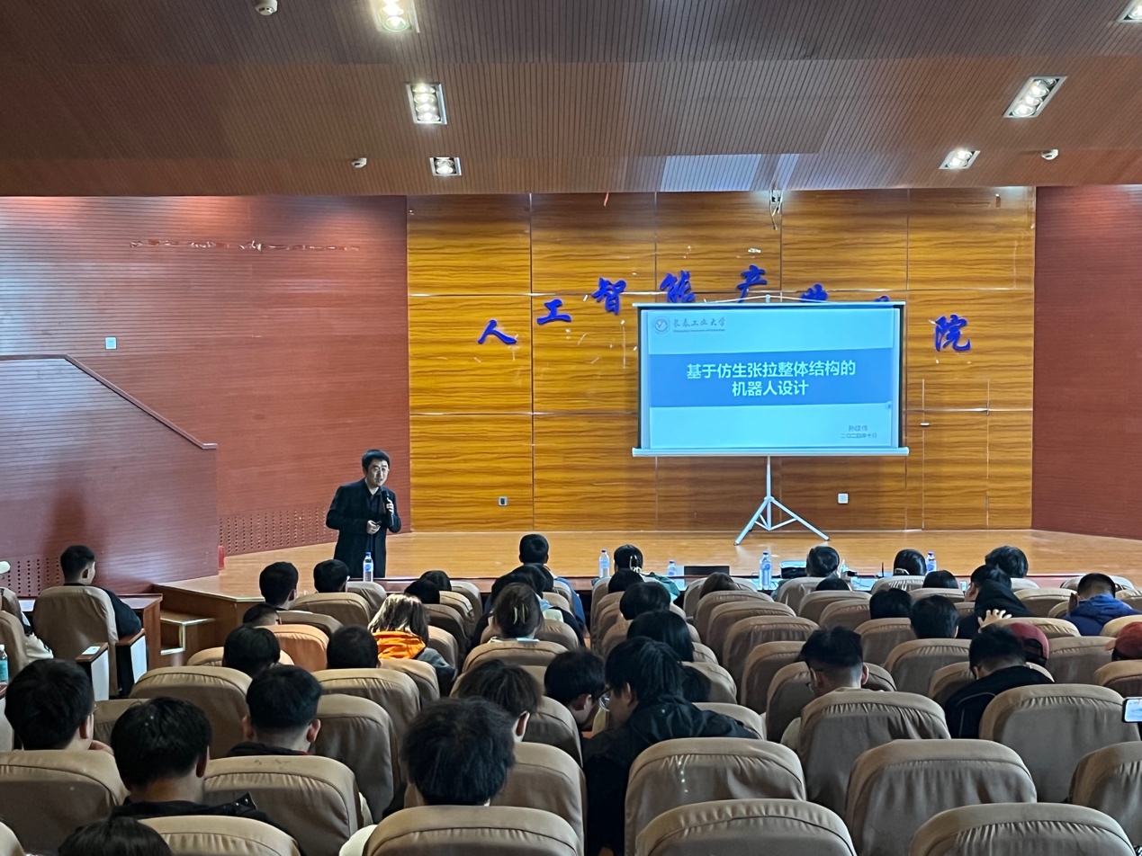 孫建偉教授的講座案例豐富多彩,理論深入淺出,使人工智能產業學院的師生們深入了解到當前仿生機器人關鍵技術研究的現狀,并對仿生張拉整體結構的機器人設計方法及未來發展趨勢也有了更進一步的了解。人工智能產業學院將繼續開展相應的學術交流活動,為師生們提供更多學習和成長的機會,推動機器人產業與人工智能產業的發展。