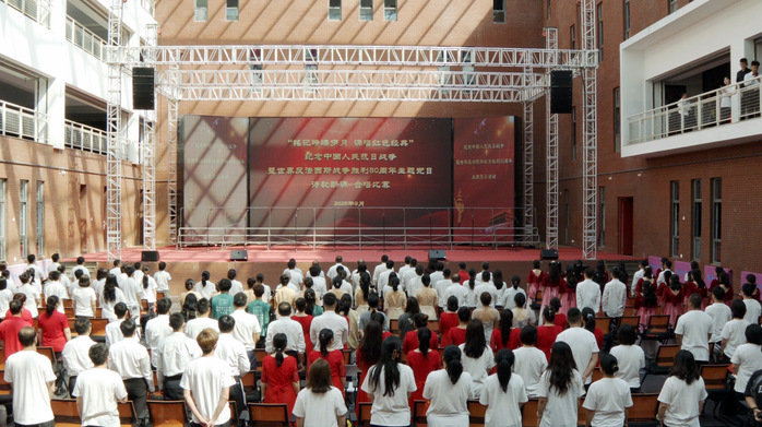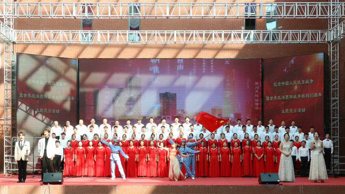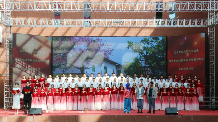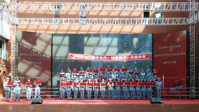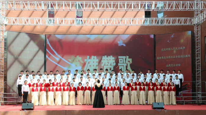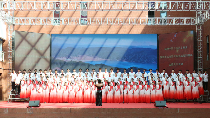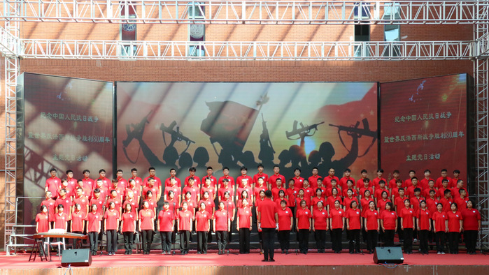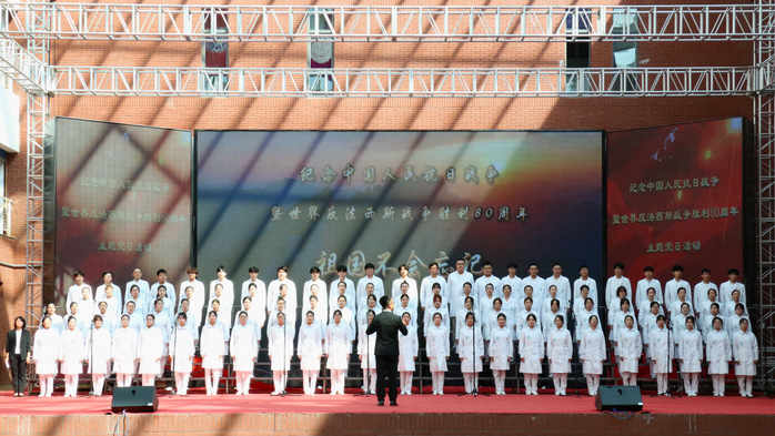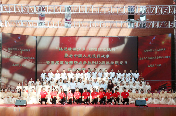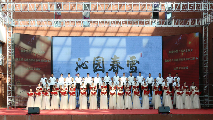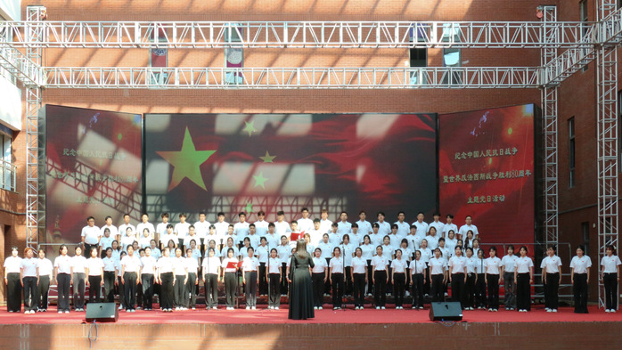 為紀念中國人民抗日戰爭暨世界反法西斯戰爭勝利80 周年,9月2日下午,學校黨委在國際學術交流中心組織開展“銘記崢嶸歲月·誦唱紅色經典”紀念中國人民抗日戰爭暨世界反法西斯戰爭勝利80周年主題黨日活動。學校領導班子成員,各黨總支、直屬黨支部師生共計1200余人齊聚一堂,通過詩與歌的交響,重溫崢嶸歲月,傳承紅色基因。