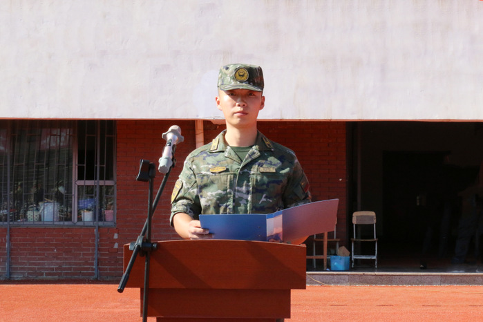 教官代表張文佳、李仁威在發(fā)言中表達了必將圓滿完成任務(wù)的決心,一是從我做起,言傳身教,為新同學(xué)樹立榜樣。二是盡職盡責(zé),精心組織,發(fā)揚不怕苦、不怕累的精神。三是科學(xué)組織,科學(xué)施訓(xùn),確保軍訓(xùn)任務(wù)安全、高效完成。
