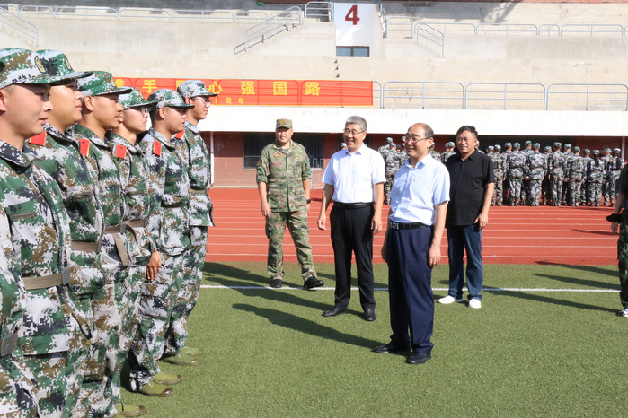 在田徑場中央的分列式訓練區域,任玉珊勉勵新生:“軍訓是對體能與意志的雙重鍛煉,隊列訓練更是大學生涯的基石,希望大家將堅持與嚴謹的態度融入專業學習之中。”張冀男從人才培養角度寄語新生:“軍訓中體現的團隊協作精神,希望大家能將其轉化為求學道路上的精神財富”。