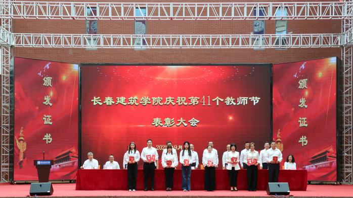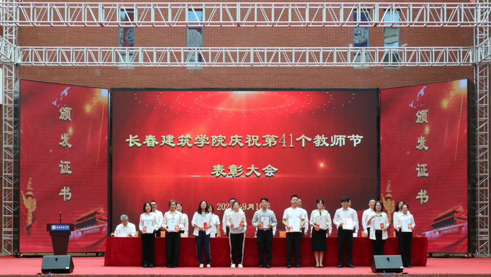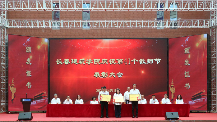 學校執行校長孫雷宣讀了《關于授予建筑與規劃學院何玉會、土木工程學院劉玲等15名教師“師德標兵”稱號的決定》《關于表彰第三批國家級一流本科課程教學團隊的決定》《關于表彰吉林省特色高水平學科(群)、專業(群)和一流學科聯合創新平臺建設項目團隊的決定》。