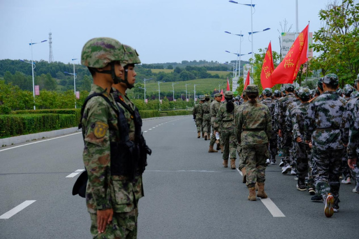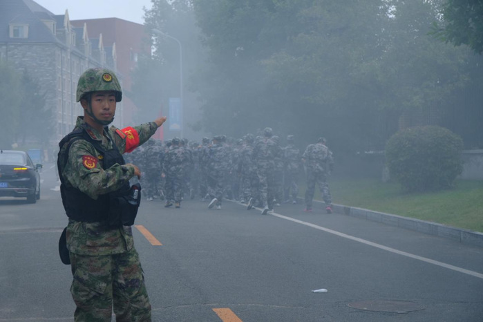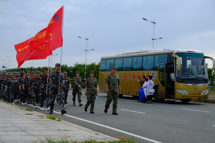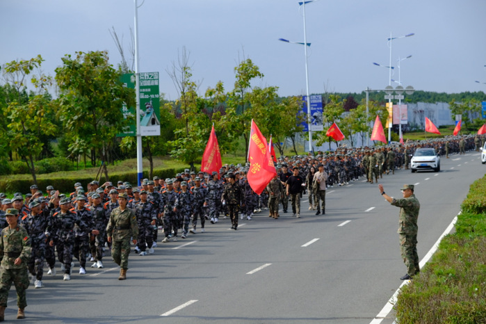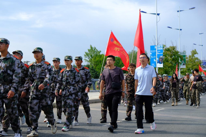 行進過程中,各梯隊展現出頑強斗志。前段路程,新生們精神飽滿,《強軍戰歌》的歌聲響徹沿途;遭遇坡度路段,呼吸逐漸急促,但無人掉隊,大家相互提醒,保持隊形穩步前進;后段進入體力消耗極限階段,同學們肩并肩,用“再堅持一下”的信念相互支撐。最終,兩支梯隊按照預定計劃,在校外指定會師點成功匯合。