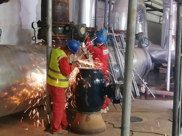 三、優(yōu)化供熱管道系統(tǒng)配置,提升管網(wǎng)調(diào)控能力。精準定位熱力外網(wǎng)與校園內(nèi)網(wǎng)供回水熱管道交接部位點,對供回水管道進行敷接改造作業(yè),對管道承壓薄弱段針對性實施改造。同時對原鍋爐熱源管道采用高壓耐高溫不銹鋼盲板封堵技術,進行多層密封處理,徹底切斷廢棄管道的安全隱患,進一步優(yōu)化管道調(diào)控精度,提升系統(tǒng)應急保障能力。