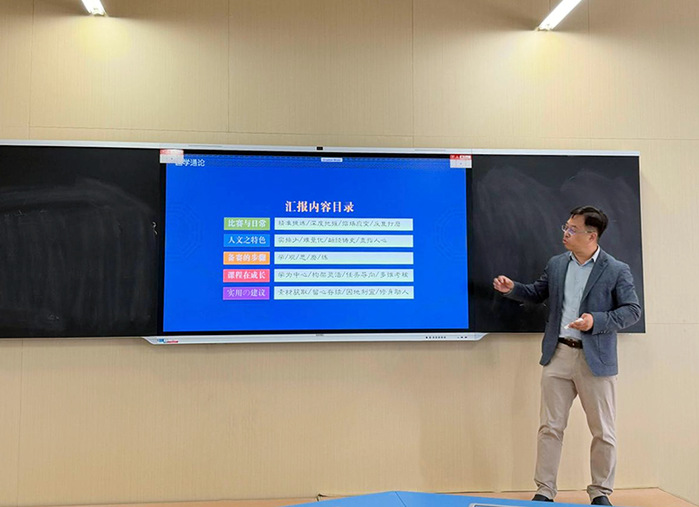 竇可陽教授首先分析了教學比賽與日常教學的核心差異,他指出教學比賽要求將教學過程提煉為對評委更具吸引力的片段介紹,強調教學法和教學效果,而非逐字復述日常授課,而日常教學則側重于完整的教學流程。他強調在文科教學比賽中,教學設計的亮點在于能否將文本、歷史等人文內容,與社會思潮、國際事件或深層次的人性探討相結合,引發學生的共鳴和思考,切記避免使用過于公式化和機械刻板的表達方式,著重突出個人教學風格和課程的獨特性,展示出教學過程本身所蘊含的思想性和啟發性。
