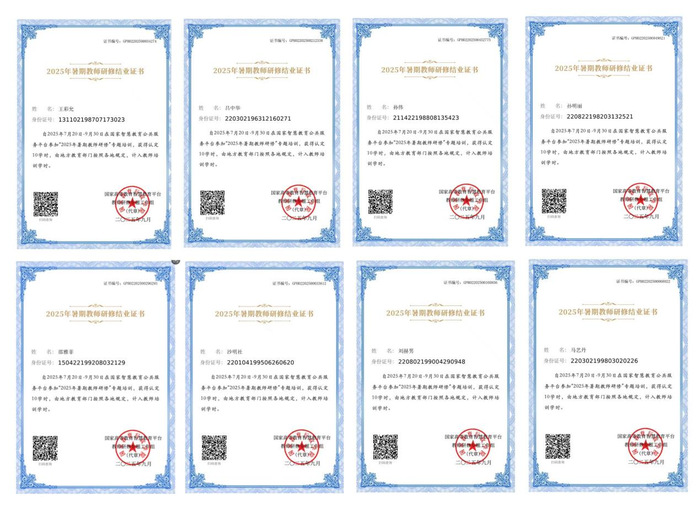 根據國家教育行政學院《2025年暑期教師研修通知》安排,教師教學發展處于7月20日至9月30日,組織全校教師參加了暑期研修,全校共有404名教師通過國家智慧教育公共服務平臺完成專題培訓,并獲得暑期教師研修證書。