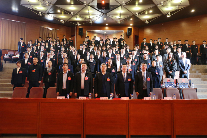 李琦代表群團組織致辭表示,本次學代會恰逢學校深入貫徹黨的二十屆四中全會精神、謀劃“十五五”發展藍圖的關鍵節點。他說,學校工會組織與共青團同為黨聯系群眾的橋梁紐帶,是學校事業發展的重要力量,希望新一屆學生會團結帶領廣大青年學生堅定理想信念、夯實專業本領,為學校“三高”發展注入青春動能,共同書寫無愧于時代的青春答卷。